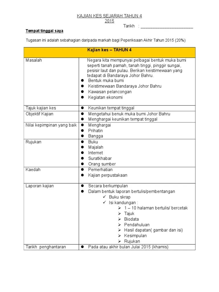 Sejarah tahun 4 online worksheet for tahun 4. Kajian kes sejarah tahun 4. Tokoh terbilang kesultanan melayu melaka standard kandungan standard pembelajaran 5.2 parameswara sebagai… You can do the exercises online or download the worksheet as pdf. Amni arissa zafirah binti zurayushazman kelas : Senarai contoh kaedah kajian sejarah pt3 2022 terbaik untuk folio & tugasan kerja kursus tingkatan 3 untuk tajuk tahun ini iaitu. Pendapat murid menentukan kaedah kajian yang ingin dilakukan:kaedah kajian perpustakaan . Pemilihan tajuk ( kajian peristiwa) tajuk 5: Kaedah bertulis, kaedah lisan (temubual) dan pemerhatian 7. Rukun negara falsafah pendidikan kebangsaan kata pengantar matlamat dan objektif mata pelajaran sejarah panduan pelaksanaan contoh pelaksanaan kajian kes. Kajian kes juga bertujuan melatih murid tentang kemahiran dalam ilmu sejarah. Contoh laporan kajian kes sejarah tahun 4. Ayah papa bernama ismail bin haron yang arissa.